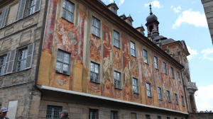 Wir wandern durch die große Fußgängerzone und besuchen das Alte Rathaus, das auf einer Regnitzinsel gebaut wurde. Mit einem leckeren Eis auf der Hand genießen wir das Treiben und die Aussicht von der Oberen Brücke auf die Regnitz.